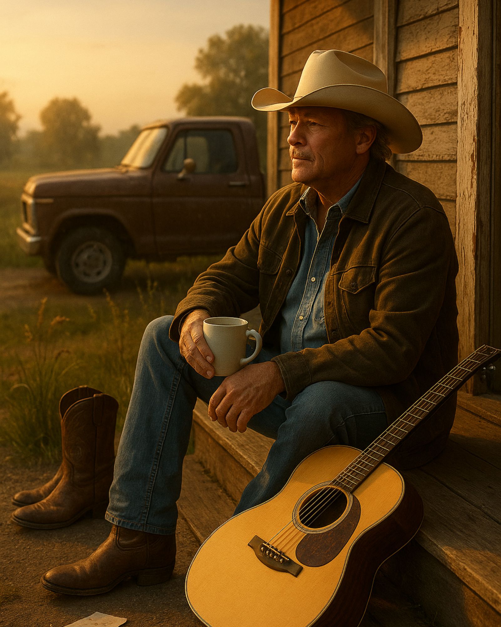 Born and raised in Newnan, Georgia, Alan grew up in a world where music wasn’t for spectacle — it was for survival. Folks sang to remember, to heal, to hold on to something real. And that’s exactly how he’s carried his guitar through every stage of his career. It’s not an accessory or a performance tool. It’s a companion. A witness. A keeper of truth.