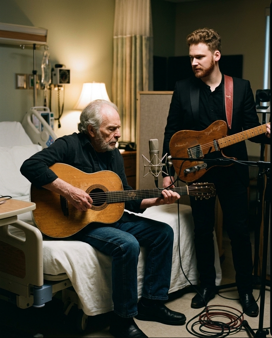 And he was not alone. Ben Haggard, his son, played electric guitar beside him. That small detail gives the moment even more heart. It was not just an aging icon fighting through pain to leave one last piece behind. It was also a father and son sharing a room, a song, and a moment neither of them could have mistaken for ordinary.