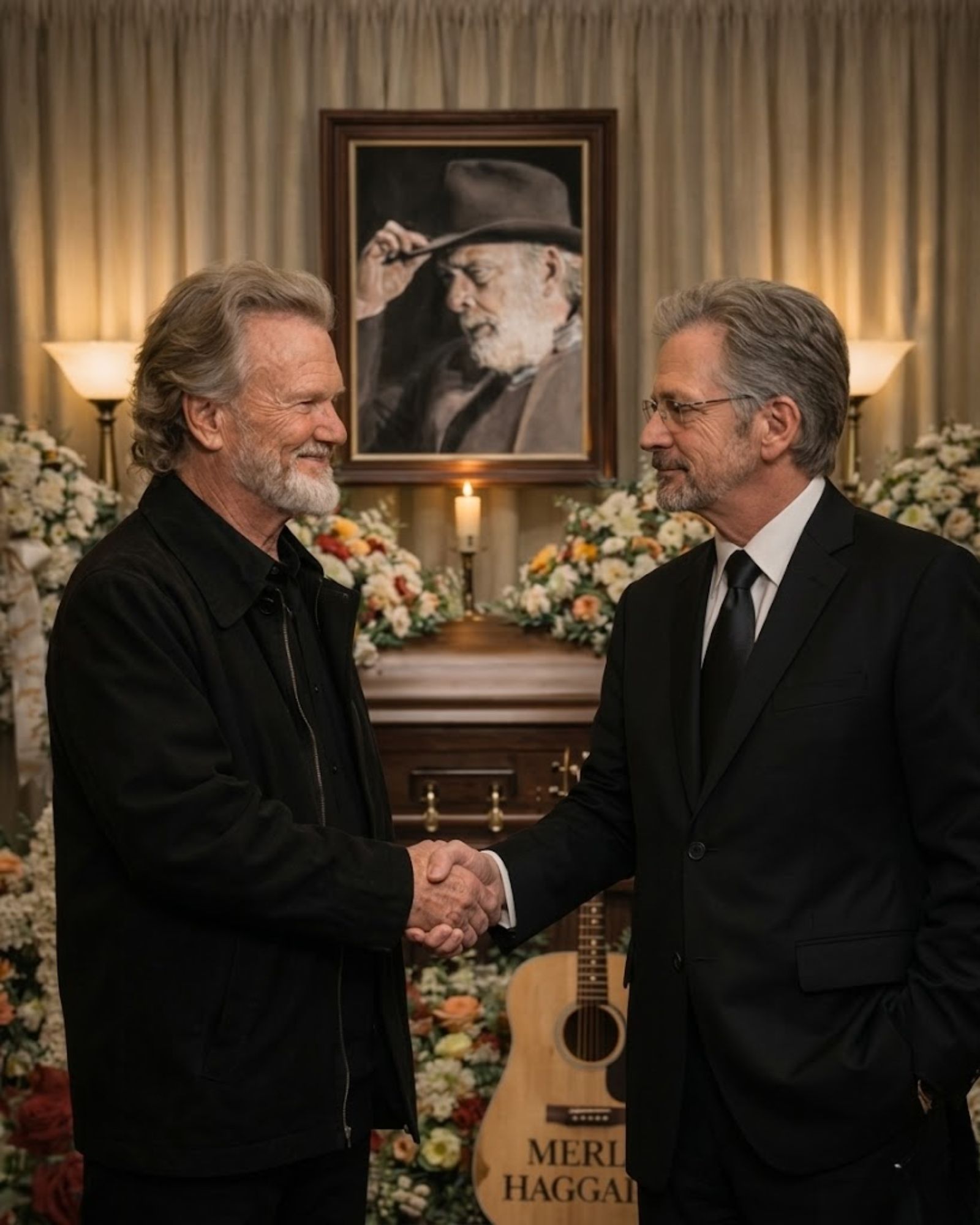 One of the most talked-about moments from that farewell came when Kris Kristofferson stepped forward to sing. A gust of wind reportedly lifted the lyrics from Kris Kristofferson’s hands, turning a solemn moment into something strangely human. Later, Marty Stuart jokingly suggested that Merle Haggard may have had a hand in it. It was the kind of joke people make through tears, half laughing, half believing that a spirit as stubborn and alive as Merle Haggard’s could not leave quietly.