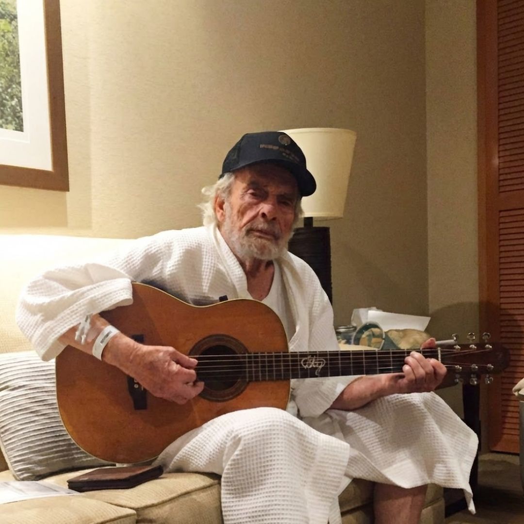 The bus wasn’t glamorous. It never was. It was cramped, loud in the wrong places, and quiet in the moments that mattered. Somewhere on a California stretch of highway in April 2016, Merle Haggard sat with his shoulders slightly hunched, as if the air itself had grown heavier. Every breath sounded like work. The kind of work you don’t show an audience.